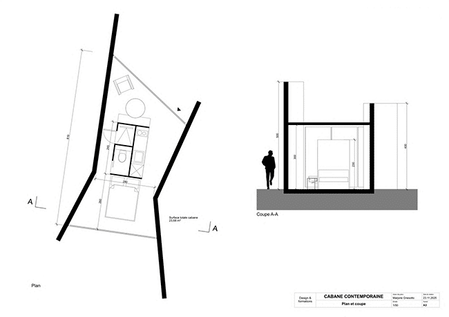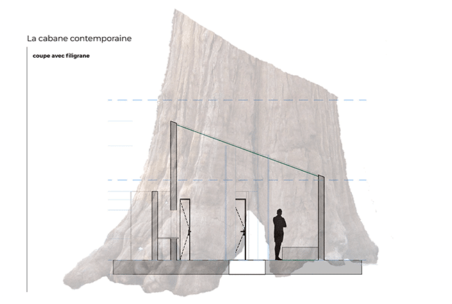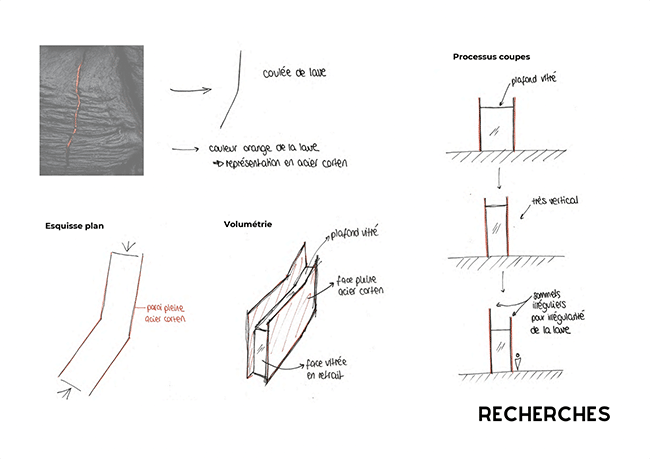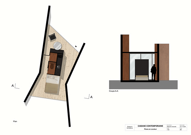 Enfin, Marjorie a imaginé une “Cabane Lava » : à nouveau un concept original et innovant pour l’aménagement de ce petit logement contemporain. Inspiré d’un volcan et de sa coulée de lave, ce projet de cabane s’intègre dans son environnement, tout en offrant un maximum de confort et de commodités à ses utilisateurs.